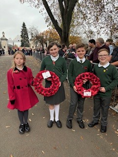 We were delighted to select Osian and Oscar to lay our Hales Valley Trust wreath, and Winnie and Willow to lay the Gig Mill wreath. Following the service, our pupils had the honour of walking in the parade alongside local representatives. It was a meaningful and memorable experience for everyone involved.
